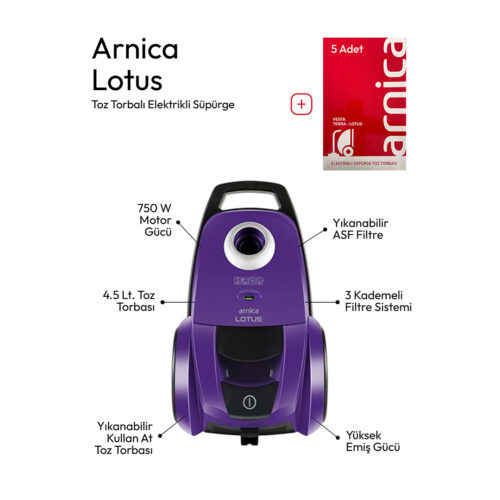 Arnica Lotus ET14260 750W Toz Torbalı Elektrikli...